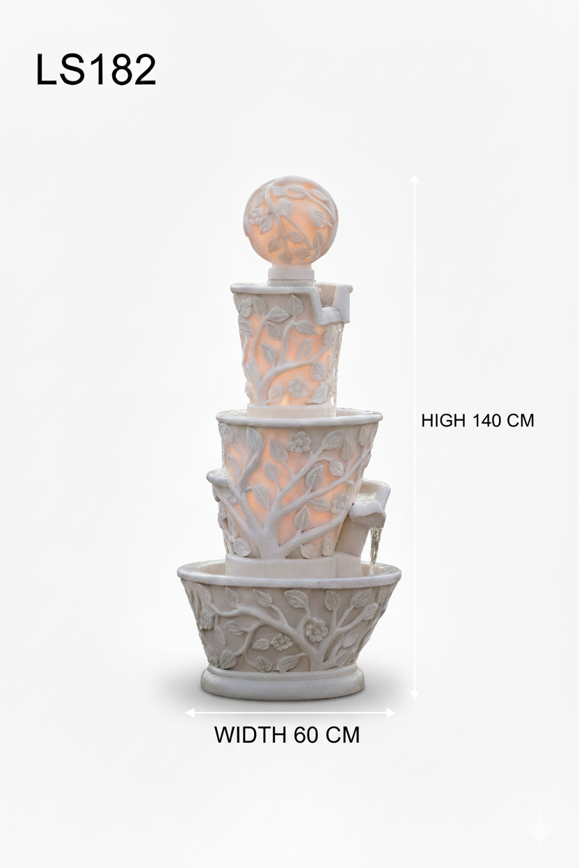 أضف لمسة من الجمال والهدوء إلى حديقتك أو مدخل منزلك مع هذه النافورة الفاخرة: