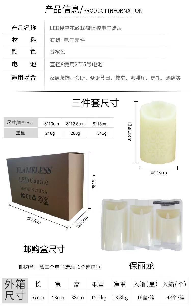 شمعات الكترونية كبيرة عدد3 يتم التحجكم بها من خلال الريمونت بعدة انارات وبرامج