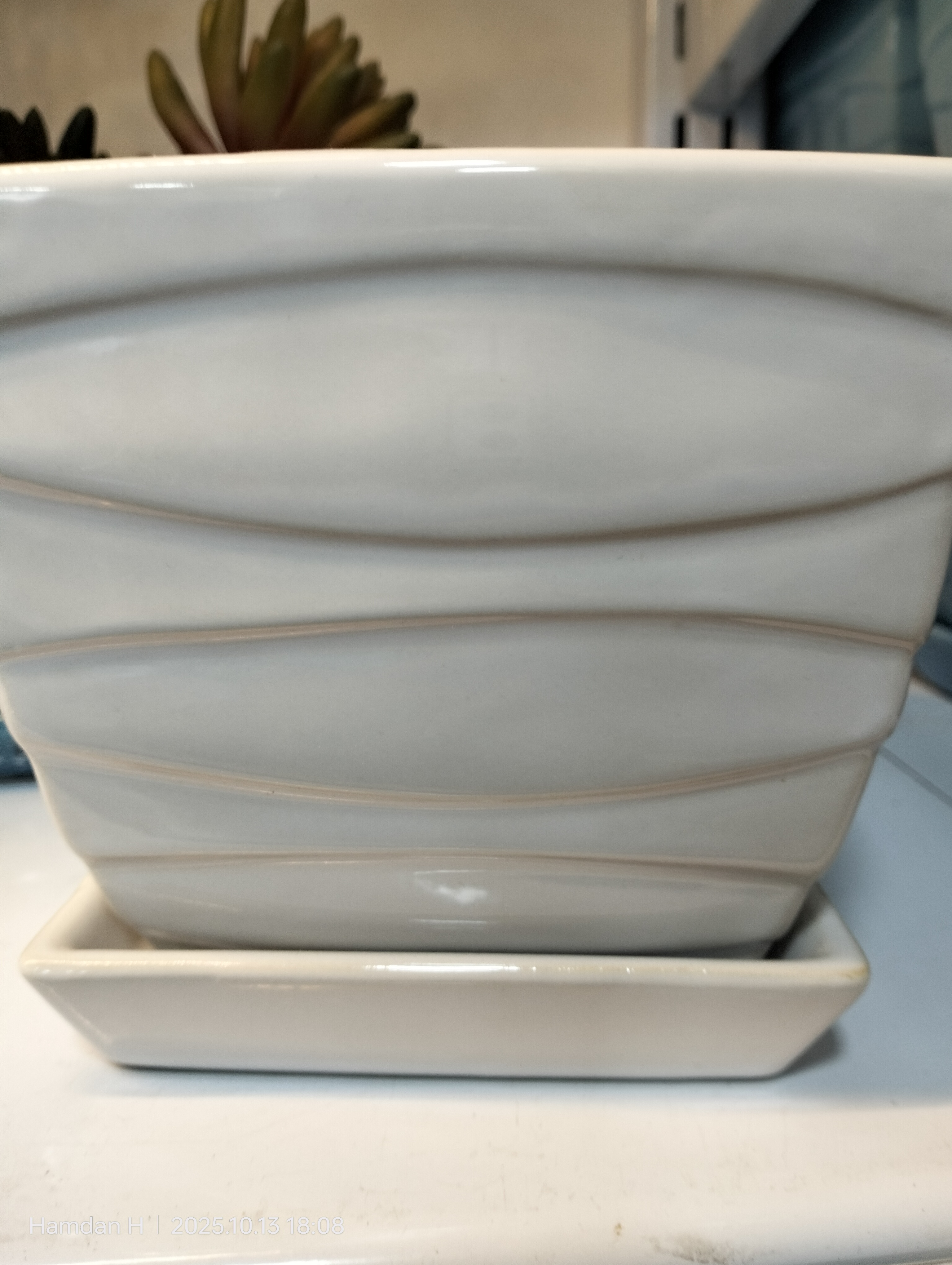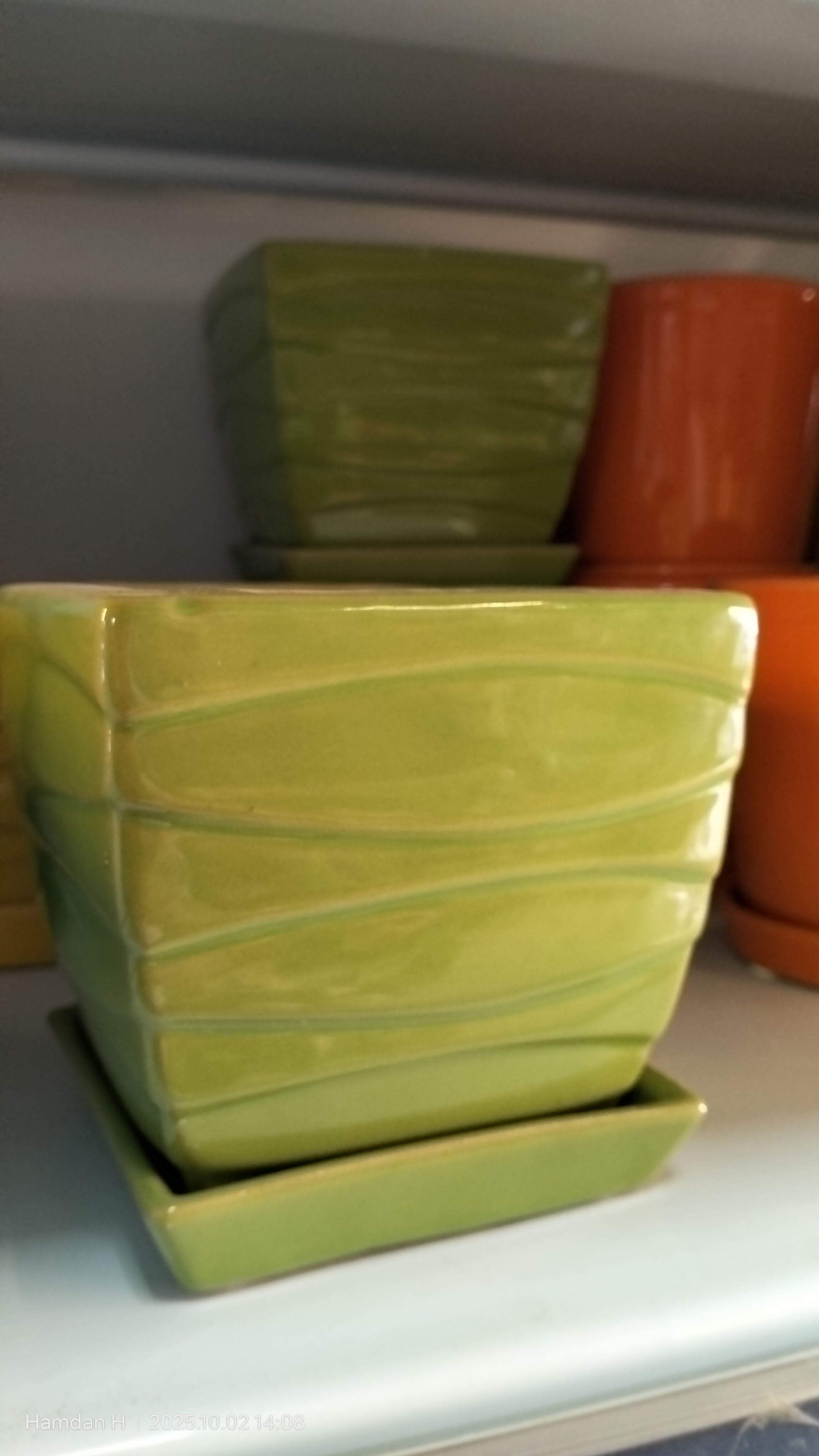 قوار سيراميك مربع مع صحن ارتفاع 12 سم وعرض 12 سم