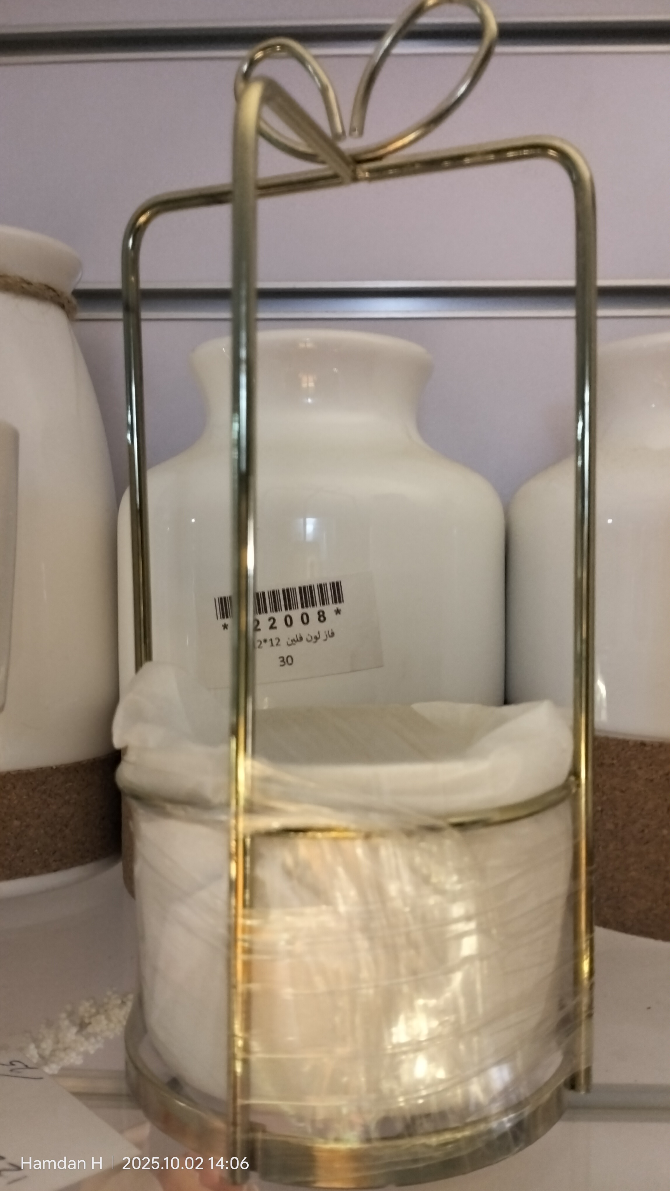 فازة بورسلان ابيض صغير مع ستاند ذهبي