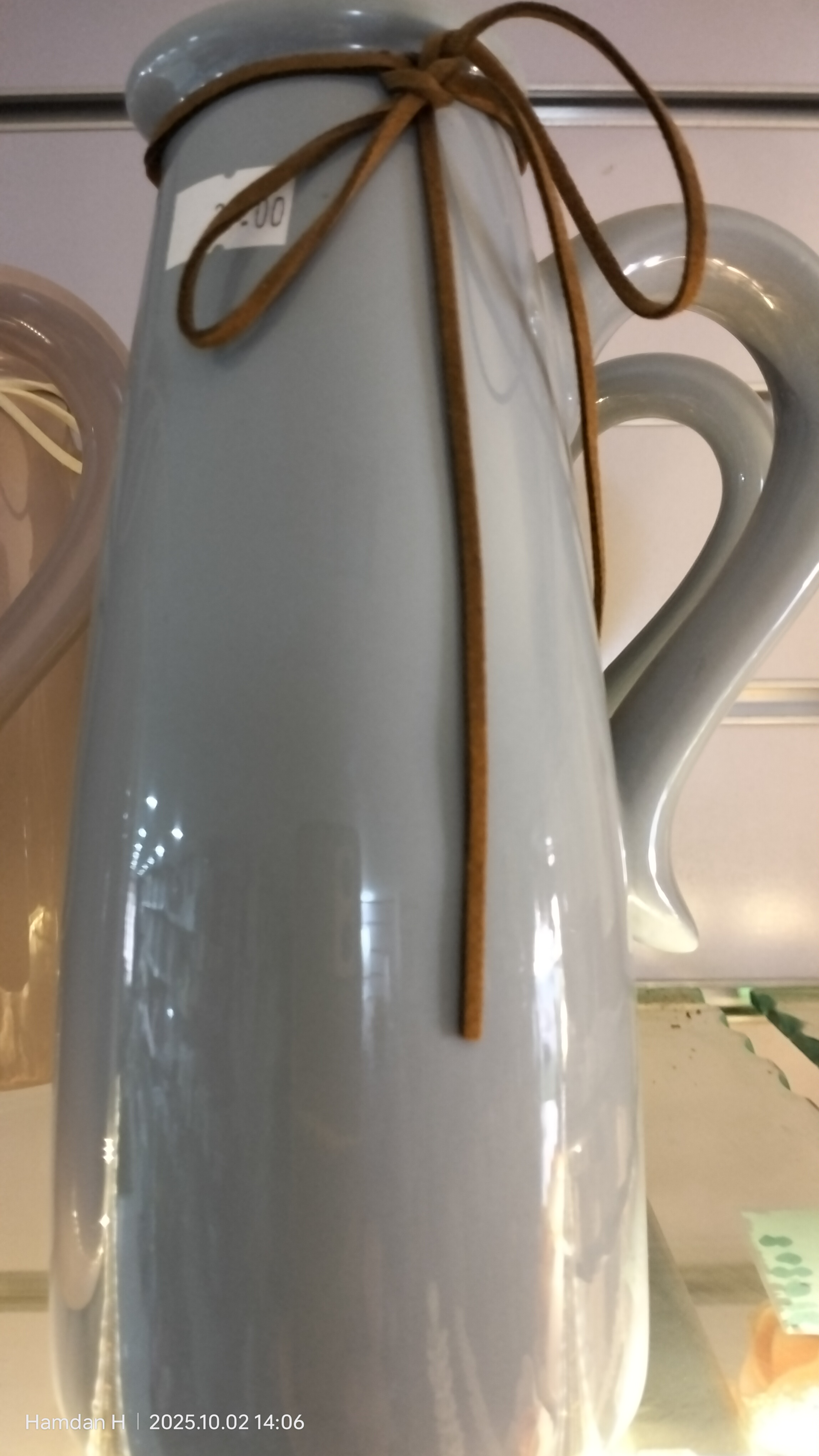 فازة بورسلان سادة شكل ابريق مع خيط ابيض 8*16*20.5